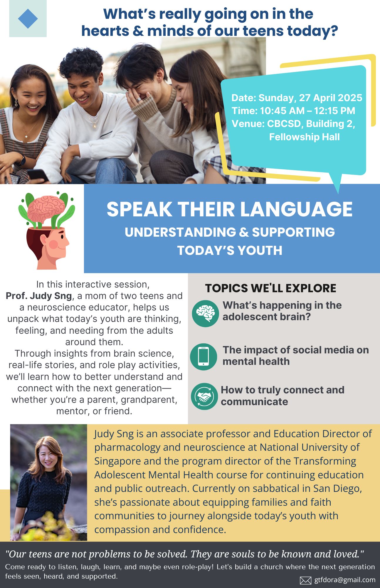 Speaker: Prof. Judy Sng (a mom of two teens and a neuroscience educator)